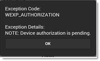The 'Username' and 'Password' match the values with the PartsWatch database but the mobile device is not yet authorized by the PartsWatch application in the PartsWatch database.