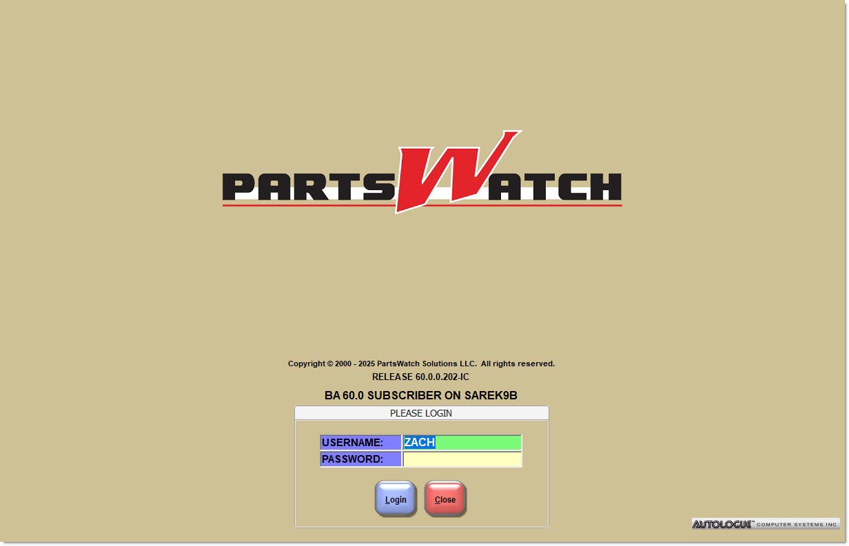 The 'Username' and/or 'Password' do not match the values within the PartsWatch database.