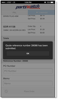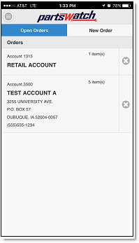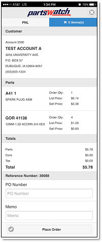 Used to create a sales order on the mobile device and submit it to the PartsWatch desktop application.