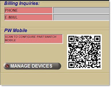 Since the mobile app needs to obtain and send information to PartsWatch, a QR Code is on the SYSTEM INFORMATION screen. Once the PartsWatch Mobile App has been installed, this QR code can be scanned from the SYSTEM INFORMATION screen to enable the mobile device to be connected to the PartsWatch database for sending information back and forth.