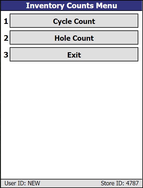 Tap the 'Inventory Counts' option on the 'Main Menu' screen to display the 'Inventory Counts Menu' screen.