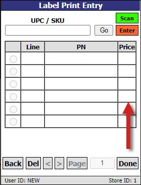 The 'DEFAULT LABEL TYPE' for a scanned part is still required to be added to the 'Label Print Entry' list. If it is missing on a scanned part, the prompt "This part does not have a default label type." will appear. A label type must be assigned in the PART PRICE ENTRY screen of the desktop application to the part to take advantage of this functionality.