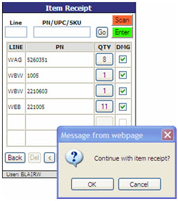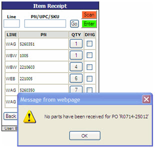 - An attempt to receive a part but not bar code is scanned and no 'LINE'/'PN' is entered