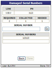 Note: Repeat the entry of damaged battery serial numbers as often as needed.