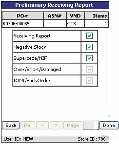 Tap 'Done'. The 'Preliminary Receiving Report' prints. Note: Quantities on the report that need to be adjusted may be edited.