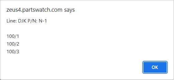 To view additional zone/bin locations, tap the button displaying the zone/bin. A pop-up appears, along with a buzzing sound, that displays the Line and Part Number of the part and then up to three locations for zone/bins, including the primary location. This provides you with guidance for additional locations to find the part. Tap 'OK' to clear the pop-up.