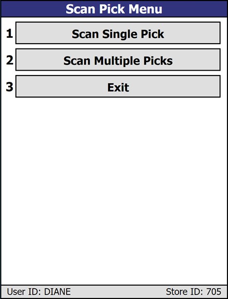 Access Scan Pick by clicking the 'Scan Pick' button on the 'Main Menu' screen.