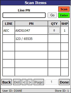 The 'SHP' quantity will be blank until the part is scanned and will increase as each quantity of the same part is scanned. The 'SHP' quantity cannot be greater than the 'QTY' sold.
