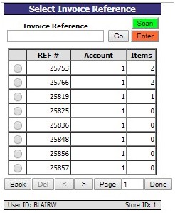 The 'Select Invoice Reference' screen opens when the a session from the 'Scan Session' screen is opened and the 'Done' button is tapped.