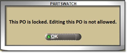 Displays a pop-up message indicating the PO is locked and no changes can be made.