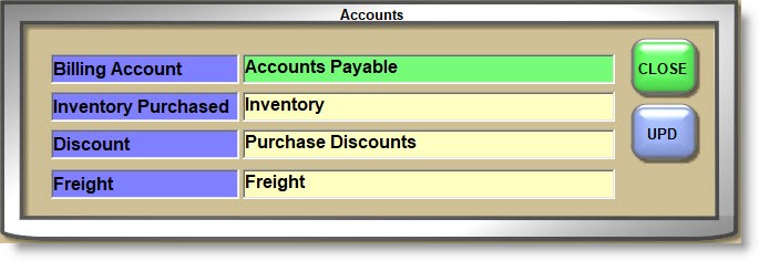 Click the button to open the 'Accounts' window used to enter field names sent in the Accounts Payable export file and necessary for QuickBooks import: