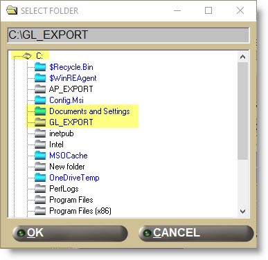 Click the button and a window opens to select the directory the G/L file will be exported to. The field displays the selected directory and cannot be edited.