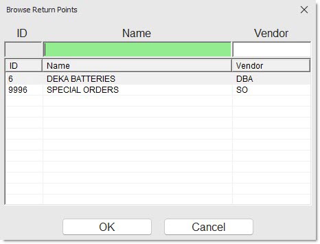 - Unchecked - Manifest return orders will not display on the MAIN PURCHASE ORDER SELECTION screen.