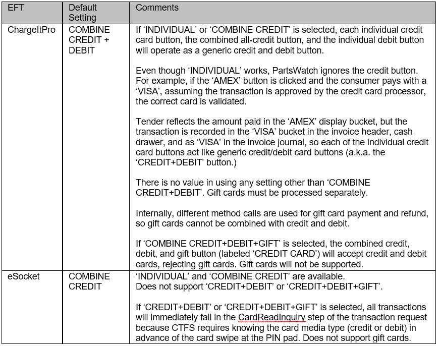 Determines whether or not Electric Funds Transfer (EFT) functionality is used to tender credit and / or debit cards.