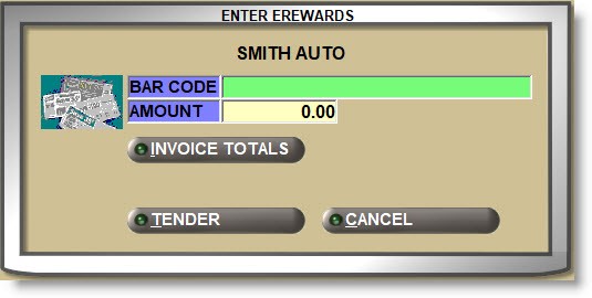 If clicked, a pop-up opens to enter the dollar amount of accumulated eRewards to apply against the invoice. A 'BAR CODE' is not necessary.