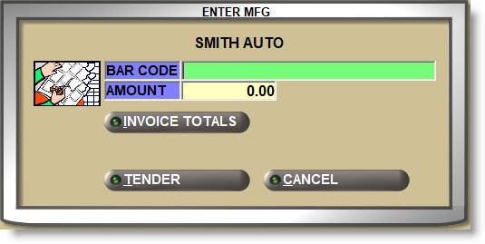 If a 'BAR CODE' is not scanned or entered and the 'TENDER' button is clicked, the system prompts to enter the 'BAR CODE'.