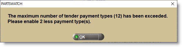 Note: A limit of twelve icons can be enabled for 'Invoice Tender'. If more than twelve are selected, when the 'UPD' button is clicked, a prompt opens to enable only twelve.
