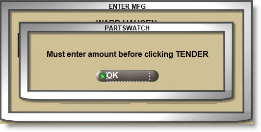 If an 'AMOUNT' is not entered and the 'TENDER' button is clicked, the system prompts to enter the 'AMOUNT'.