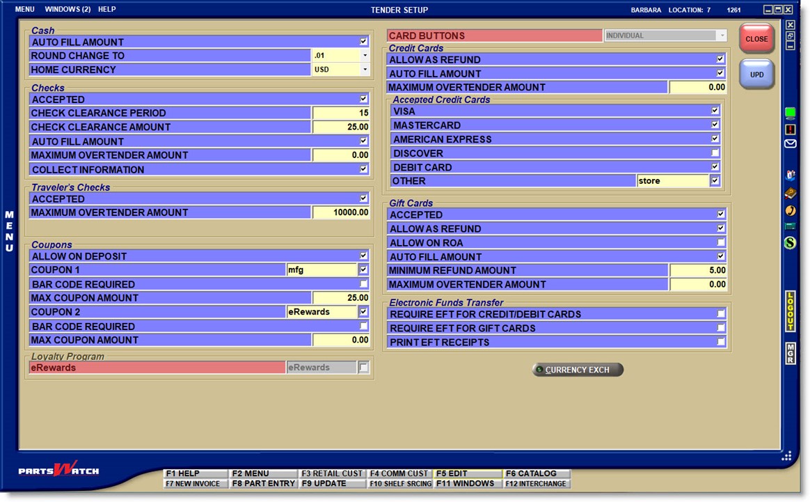 Determines whether or not eRewards are tracked at 'Invoice Tender'. eRewards is a subscription fee-based feature and must be enabled by PartsWatch Support.