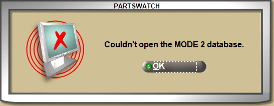 - If Mode 2 is not available, the system will prompt, "Couldn't open the MODE2 database." One or more additional pop-ups may display as PartsWatch attempts to access cached data.