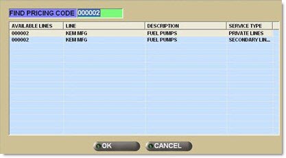 Displays the pricing code for the industry pricing or private lines pricing. Click the button to display a window to search for the available pricing server data for the industry pricing or private lines pricing.