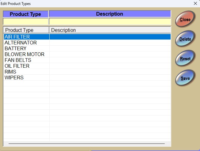 Click to display the 'Edit Product Types' pop-up, which enables you to create a defined list of product types.