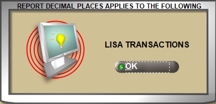 Click to display the 'REPORT DECIMAL PLACES APPLIES TO THE FOLLOWING' pop-up that indicates the reports that the report decimal places functionality applies to.