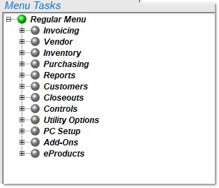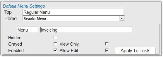 The 'MENU TASKS' section on the left side of the screen is used to enable/edit, view-only, gray-out, or hide menus or sub-menus leading to the screens.