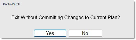 Once all changes are made to a 'PLAN', click the 'UPD' (update) button to save all changes. If the 'UPD' button is not clicked, the system asks to exit without saving changes.