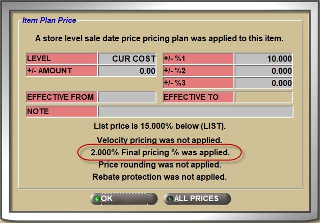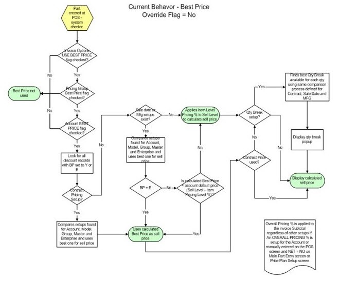 Finally, whether the 'BEST PRICE OVERRIDE' flag is enabled or disabled, if no setups are found, it uses the account 'SELL LEVEL' as the customer sell price.