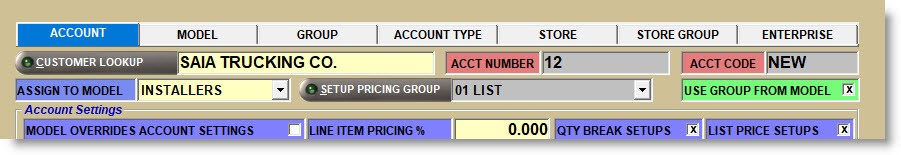 If pricing setups are entered by Account Type under the 'ACCOUNT TYPE' Mode tab, then the setups in the pricing grid are available to all customers with that Account Type.