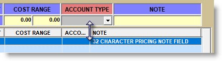 If the 'COST RANGE PRICING' setup is enabled, the 'COST RANGE' setup fields display in the pricing grid. If the setup is disabled, the fields do not display.