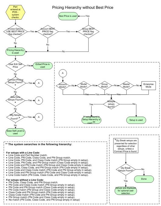 The “hierarchical” method is used if Best Price is not enabled. Pricing Hierarchy orders the setups from highest to lowest priority: Account, Model, Group, Account Type, Store, Store Group, Enterprise, by 'SETUP TYPE' and by the order of rows in the grid regardless of how the 'BP' (Best Price) field is set on a row.