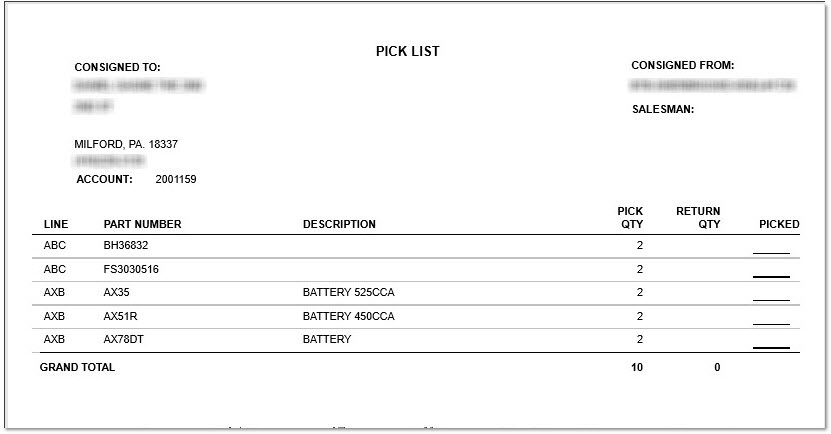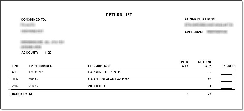The Consignment 'Pick List' or Consignment 'Return List' can be used as a pick list for pulling the inventory to send to customers or items to return to the shelf.