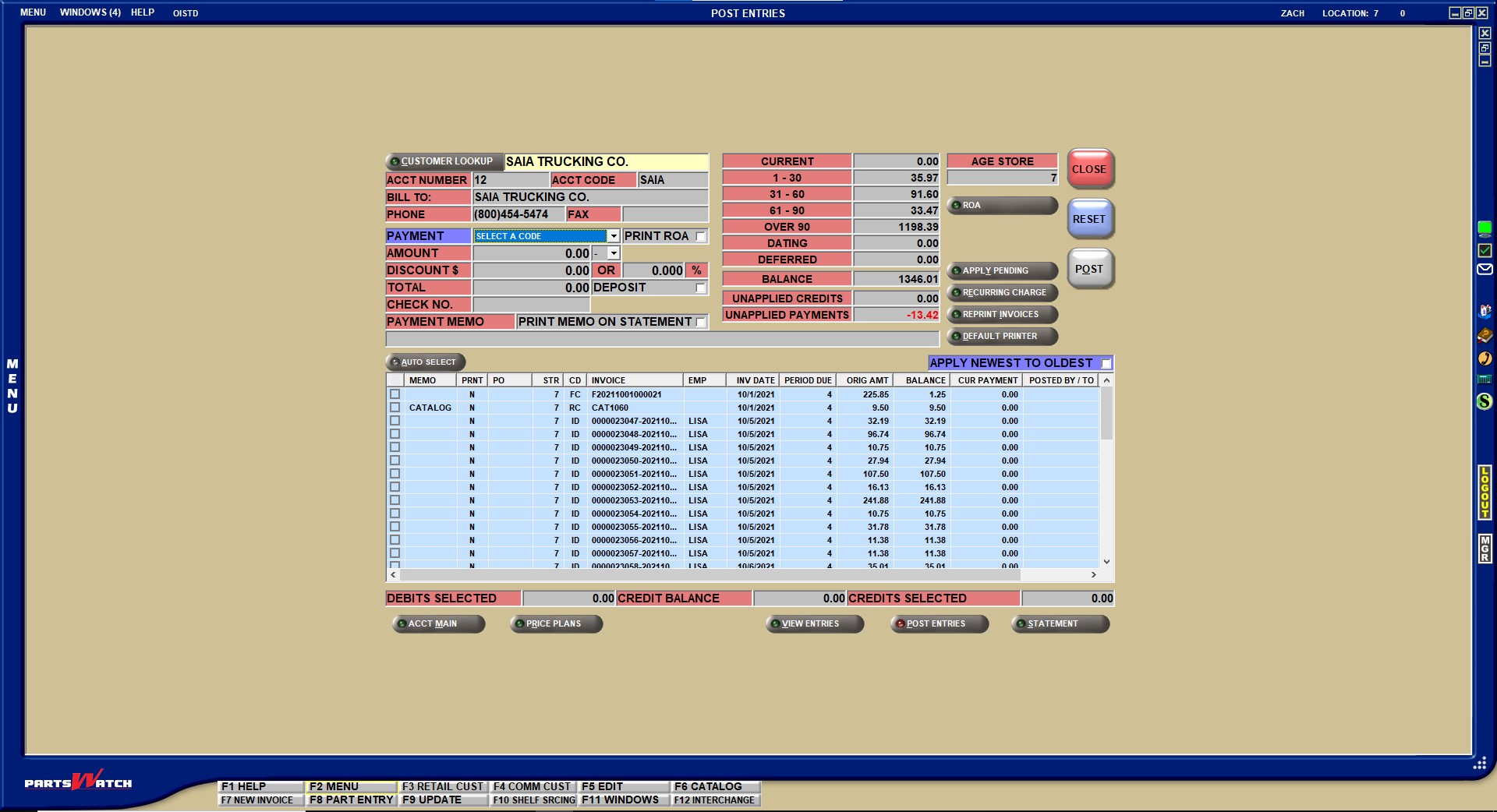 The POST ENTRIES screen is used to manually apply customer debits and credits on an account.