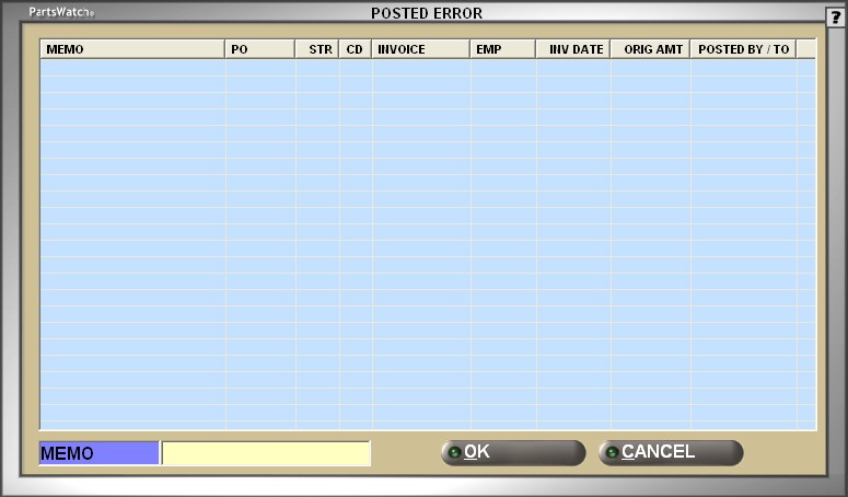 When selected in the 'PAYMENT' field in the POST ENTRIES screen, the 'POSTED ERROR' window displays with a list of all the posted transactions that can be reversed.