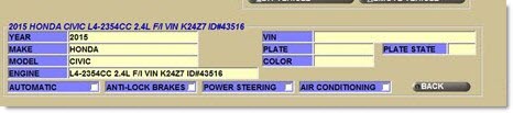 Populates the lower left of the screen with the vehicle information of the highlighted vehicle in the 'Previous Vehicles' grid.