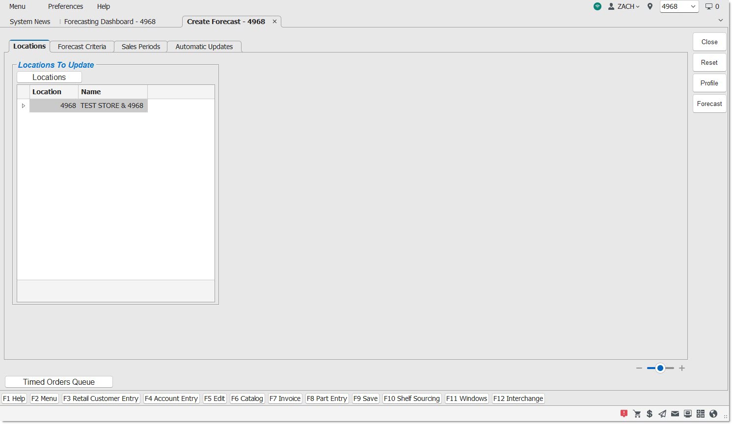 Note: While a user can only create a forecast profile that includes locations within their Store Group only, they can access and create a forecast using any saved forecast profile, regardless of which stores are included (as long as the profile is not private).
