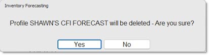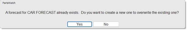 When the 'Forecast' button is clicked on the Create Forecast screen, and the results of an open forecast already exists with the same profile name, the following pop-up displays: