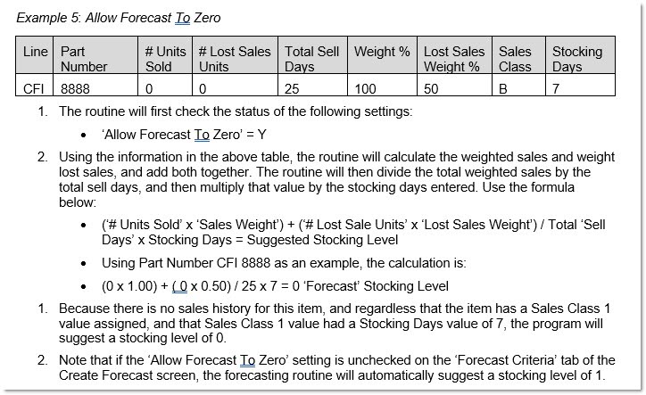 Checked – The forecasting routine does not prevent a forecast stocking level suggestion of zero (for Min, Max, or Order Point).
