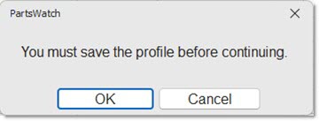 A forecast profile must be saved before creating a forecast. If the 'Forecast' button is clicked before there is a saved profile, the prompt pop-up below displays: