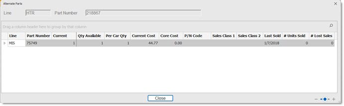 Note: Since virtual inventory (non-SKU) parts do not have sales history or lost sales history, the forecast process qualifies virtual inventory (non-SKU) parts by Line, P/N Code and Sales Class. Consequently, without histories, the forecast results indicate that the stocking level should be zero (0). However, if there is a 'Per Car' quantity, the stocking level is set to the Per Car quantity, or based upon criteria settings the stocking level may be set to one (1). Virtual inventory parts (non-SKU) may be moved into the regular inventory (part table), unless other restrictions apply.