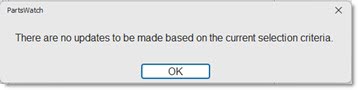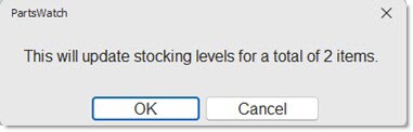 When the 'Update Stocking Levels' button is clicked, but there are no items in the forecast that match the option selected in the 'Apply Updates To:' drop-down, the application displays the following prompt: