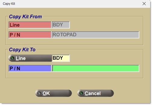 Displays the old Line associated with the kit selected from the Kit List grid to be copied. Select a new line for the new kit.