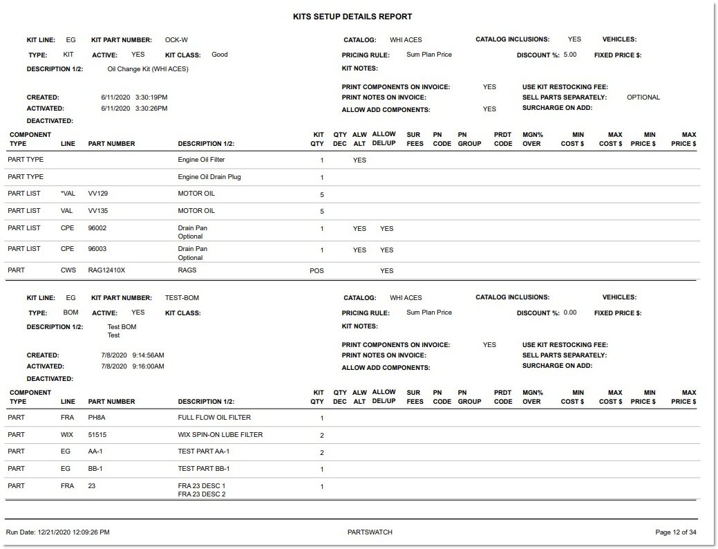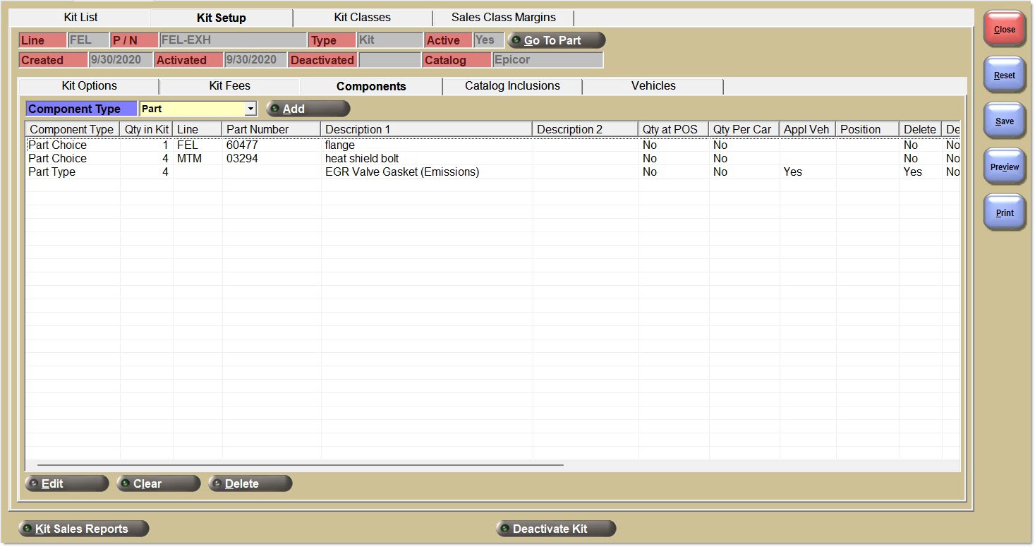 If no 'Default' is specified, and more than a single part number has been entered, no default part number displays in the KIT on the 'Kit' pop-up at Point-of-Sale. Manually select a part from the list at Point-of-Sale.