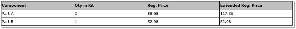 If any of the components in the kit contain fractional selling units, the application displays those units with their respective decimal precision, and displays the appropriate grand total.