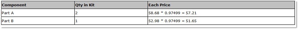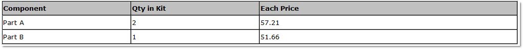 Note: Component costs can change over time so the BOM part's current cost can be different each time the kit is "packaged".