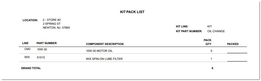 After the pack list prints (to the default assigned printer), the application returns control to the 'Package Kit' pop-up.