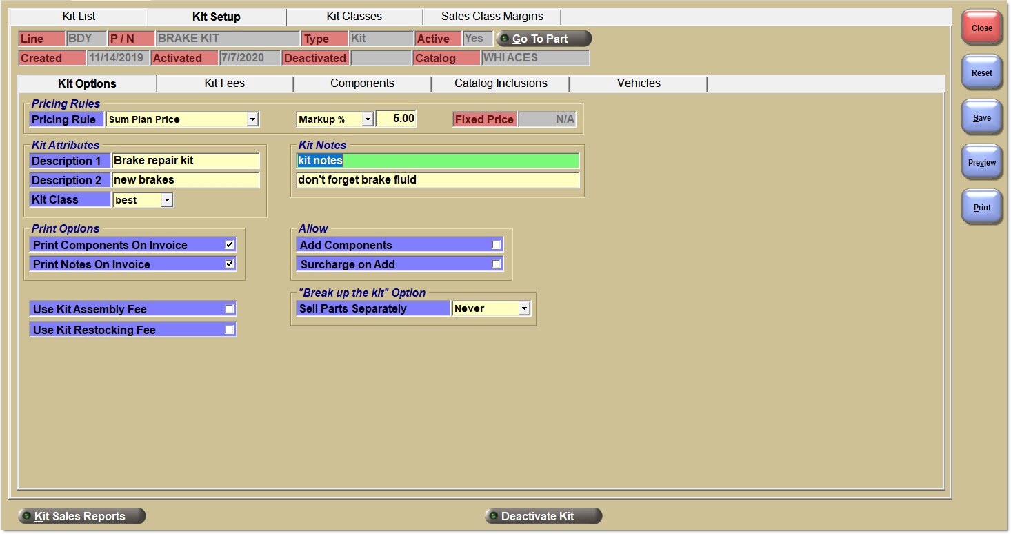Click to deactivate a kit and make it unavailable for sale at Point-of-Sale.