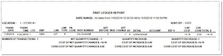 Note: The BOM part's core cost is used on the Inventory Cost Report and all inventory extracts. However, at Point-of-Sale, the sum-total of all component core costs is used to calculate the BOM part's cost.